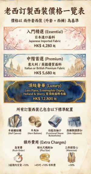 我們深知許多客人擔心傳統裁縫店的價格不透明。在 老西 Old Fashioned Tailor,