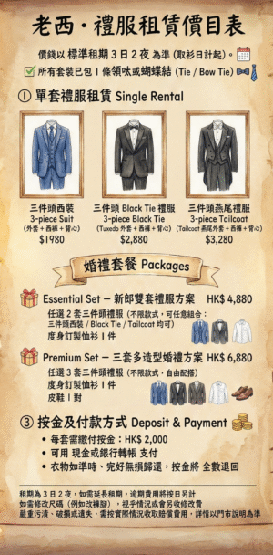 我們堅持 「明碼實價」。無論你是剛入職的畢業生、尋求 Gym Fit 剪裁的健身人士,還是準備婚禮的新郎,