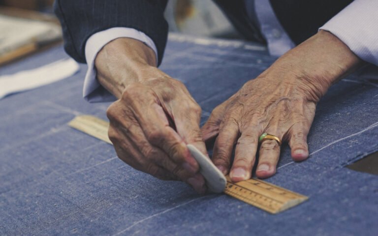 師傅會在這裡進行 毫米級的調整:收腰是否足夠?褲管是否俐落?確保西裝如第二層皮膚般貼合。